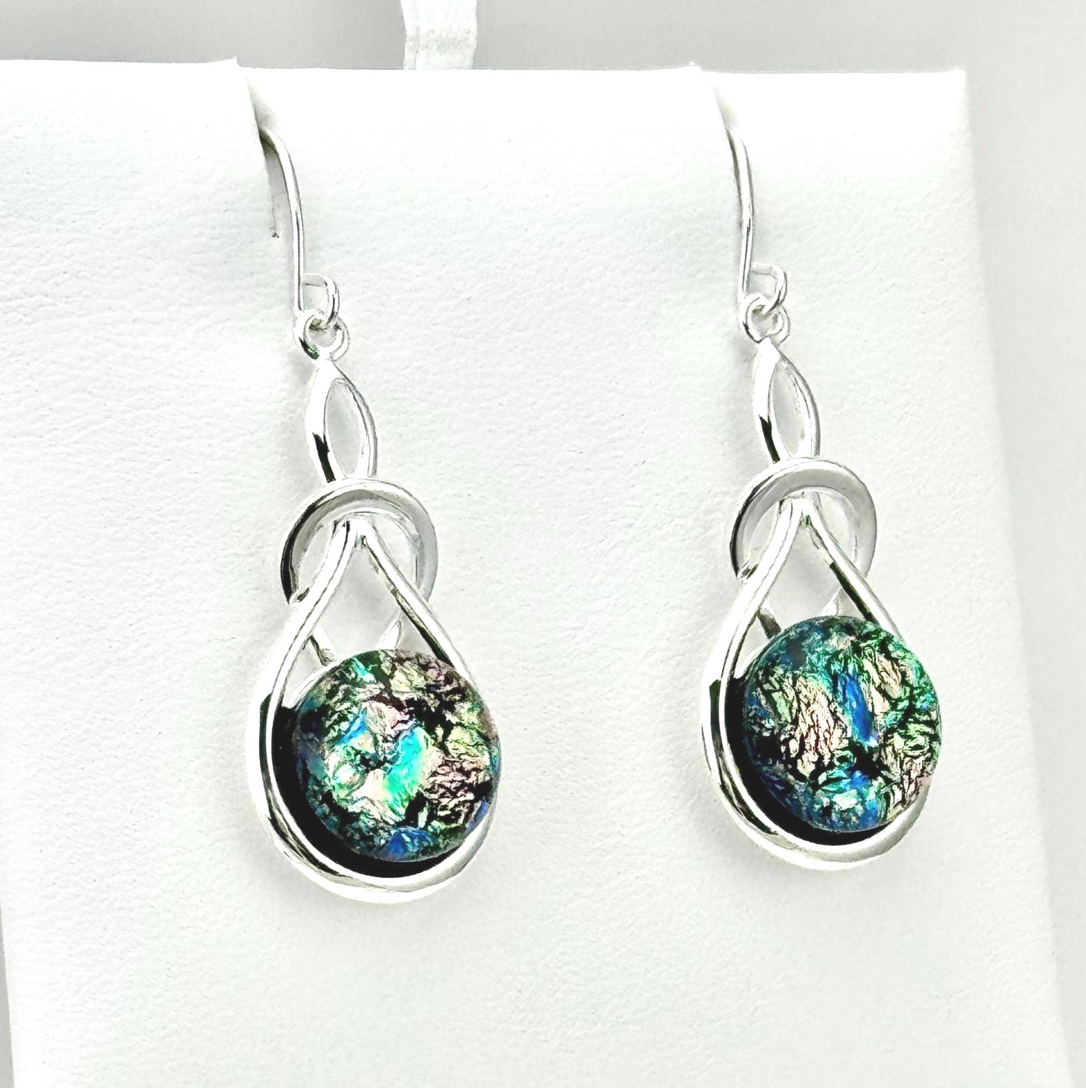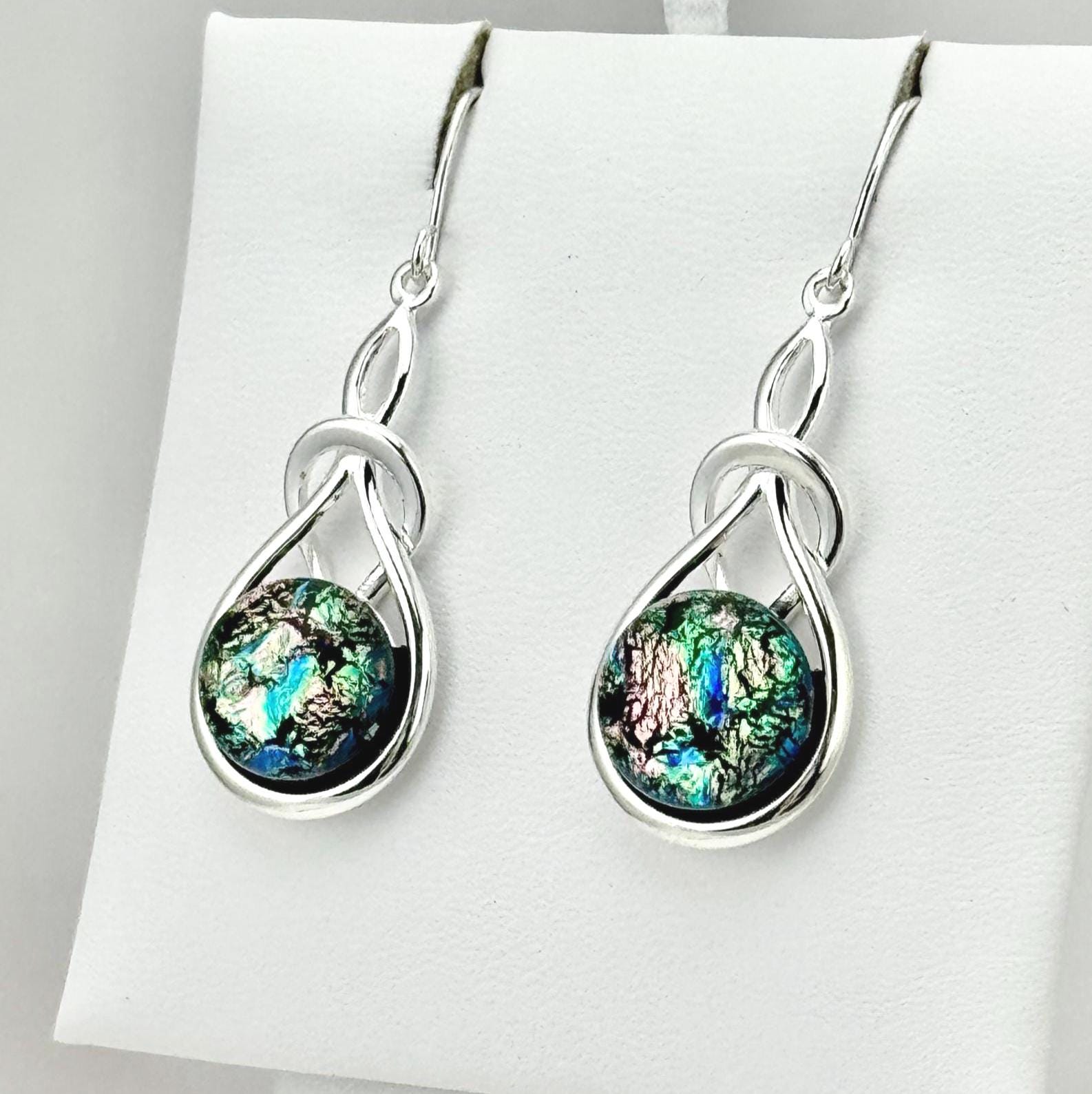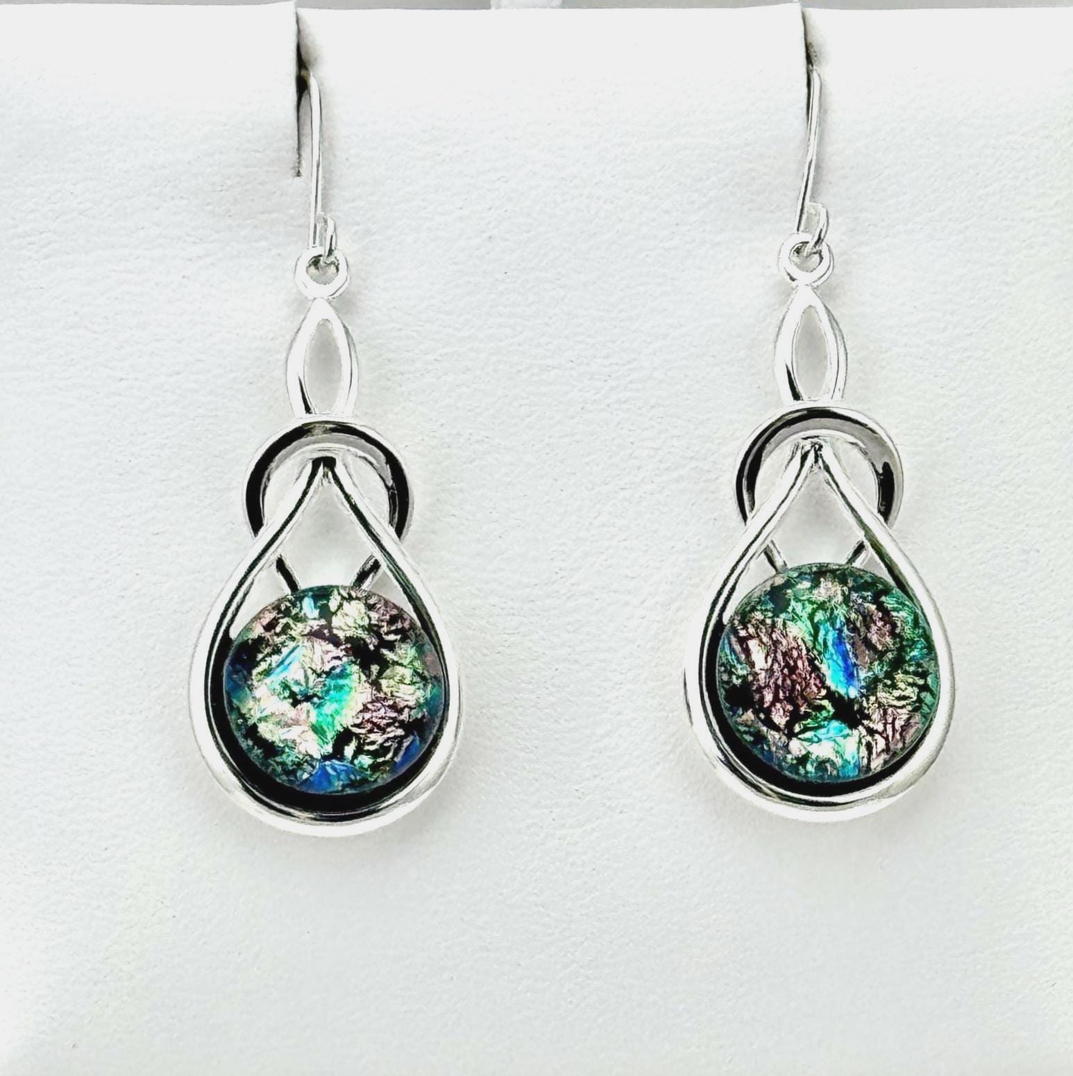 These earrings are made with hand-cut glass that is fired in a kiln, then shaped perfectly to fit in these beautiful silver earring settings. The silver settings are forged in copper with two layers of .925 Sterling Silver. Hand cut with a diamond bladed saw & glass grinder, the glass was fired in a kiln multiple times to create depth, color and vibrance that is dynamic with both light and movement. All of my designs are inspired and created from a heartfelt desire to share love and light through wearable art.