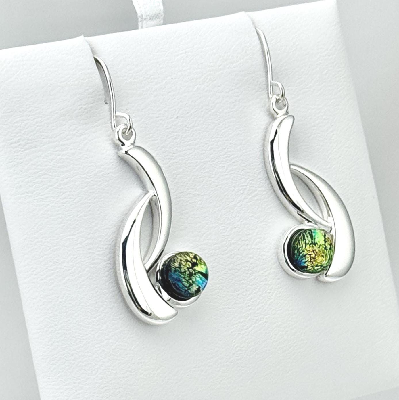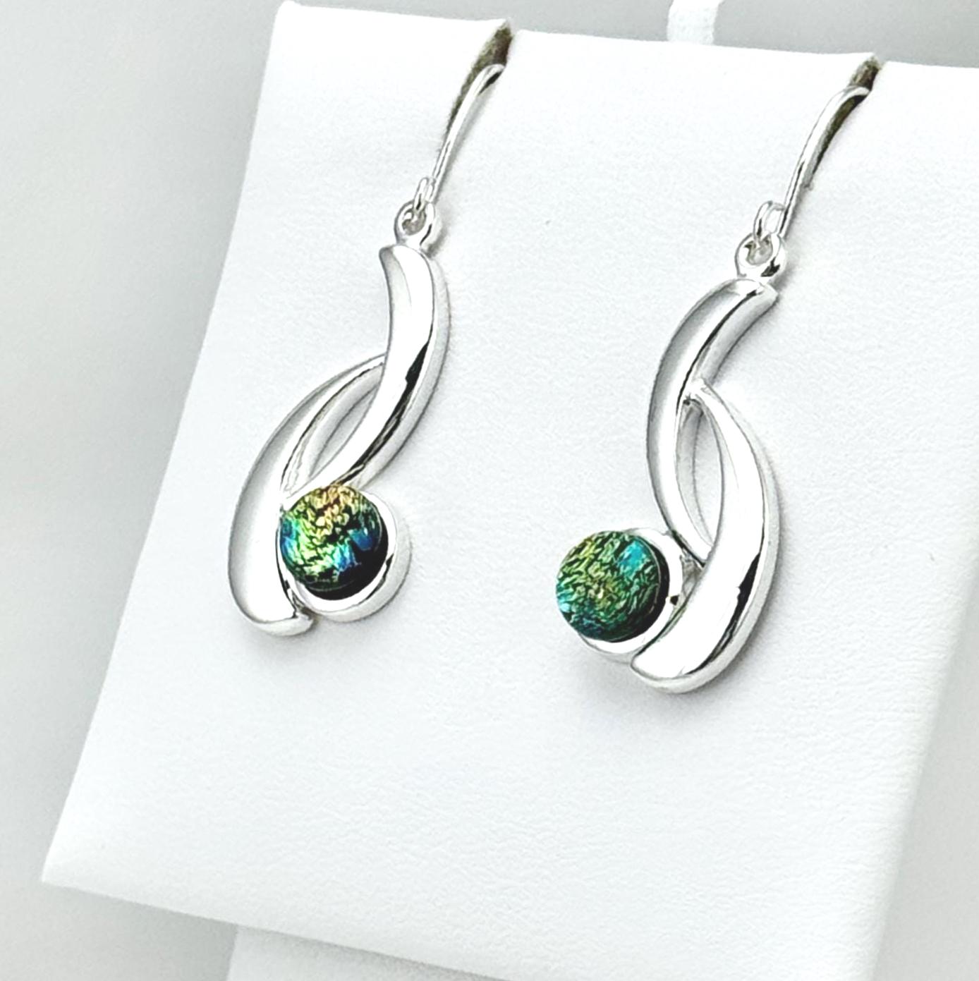 These earrings are made with hand-cut glass that is fired in a kiln, then shaped perfectly to fit in these beautiful sterling silver earring settings. The depth, and vibrant color comes from multiple layers of glass reflecting in the light. The silver settings are made with .925 Sterling Silver twice layered over a base metal of copper. My glass jewelry designs are inspired and created from a heartfelt desire to share love and light through wearable art.