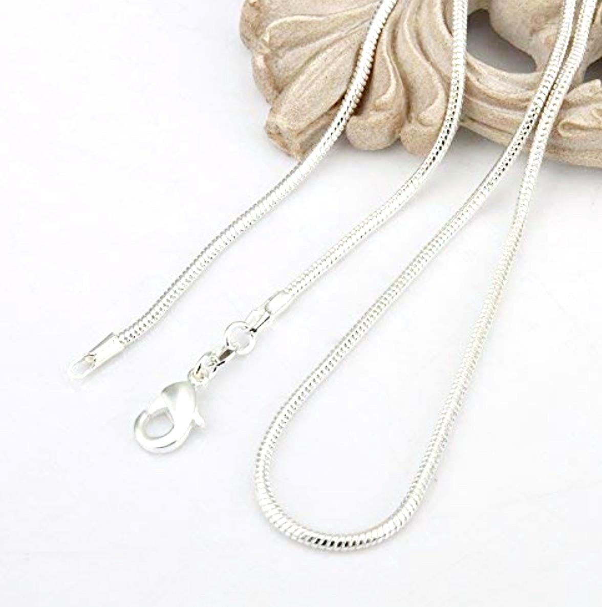 This pendant is shown with a 2mm silver snake chain that is is included with purchase. The chain is .925 Sterling Silver Plated, and is available in 16", 18", 20", 22" & 24" lengths.