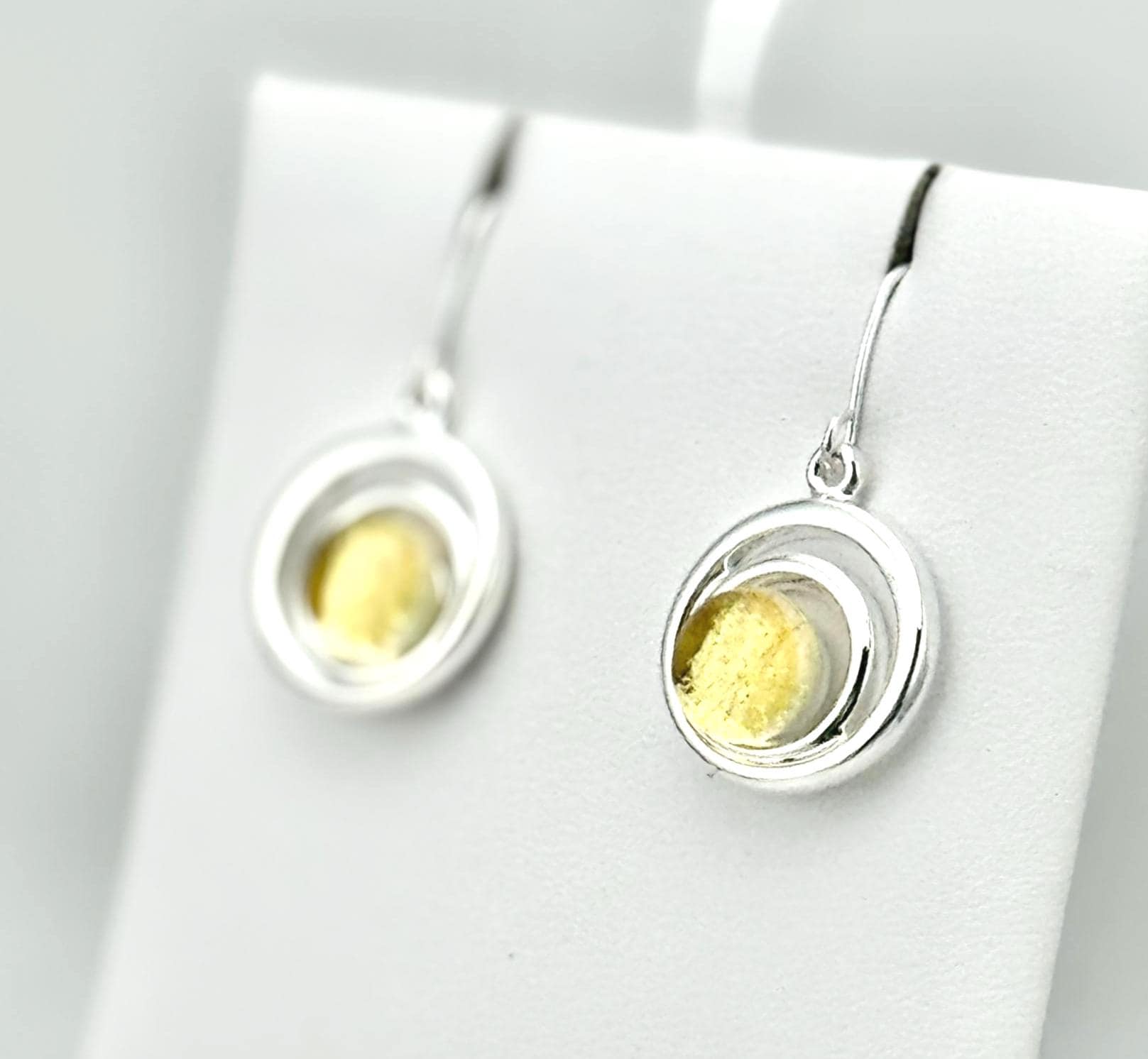 These earrings are made with hand-cut glass that is fired in a kiln, then shaped perfectly to fit in these beautiful silver earring settings. The silver settings are forged in copper with two layers of .925 Sterling Silver. Hand cut with a diamond bladed saw & glass grinder, the glass was fired in a kiln multiple times to create depth, color and vibrance that is dynamic with both light and movement. All of my designs are inspired and created from a heartfelt desire to share love and light through wearable art.